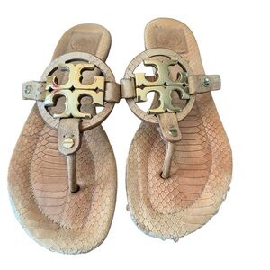 Tory Burch Gold Metal Snakeskin Miller Sandals
