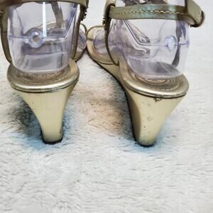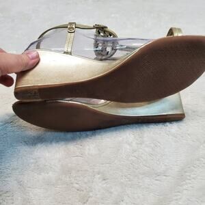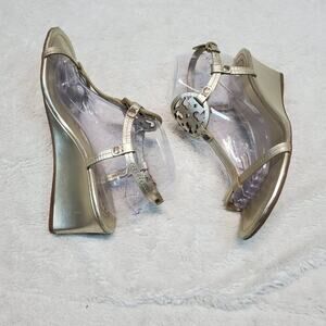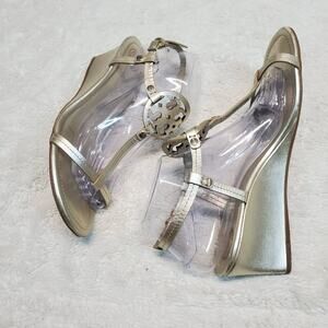 Tory Burch Gold Metallic Bohemian Formal T Strap Sandal Buckle Wedge Heels 10 M