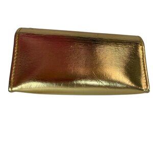 Tory Burch Gold Metallic Structured Clutch With Velvet Lining & Brass Details 2s