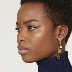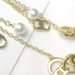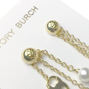 Tory Burch Gold & Pearl Chain Dangling Earrings NWOT