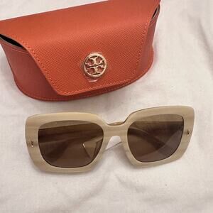 Stylish Tory Burch sunglasses. Elegant gold frame. Perfect for any occasion.