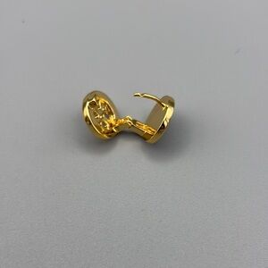 Tory Burch Gold Tone, Emerald Green Enamel and Crystal Double sided hoops
