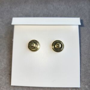 Elegant Tory Burch stud earrings featuring a beautiful pink center with a gold trim. Perfect for adding a touch of sophistication to any outfit.