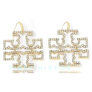 Add a touch of elegance to your outfit with these stunning Tory Burch dangle earrings, featuring a geometric design adorned with shimmering rhinestones. Perfect for any occasion, these gold-plated earrings will elevate your style effortlessly.