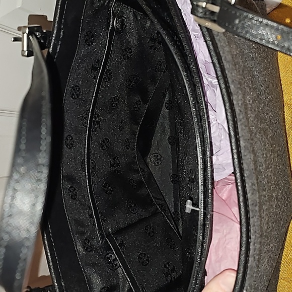 Tory Burch Gray Flannel York Tote w/Black Leather Handles Like New