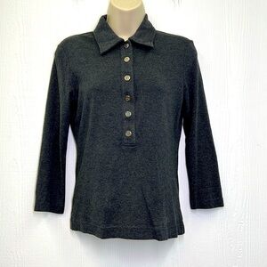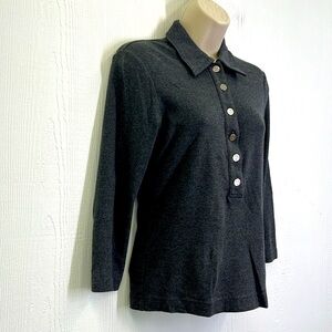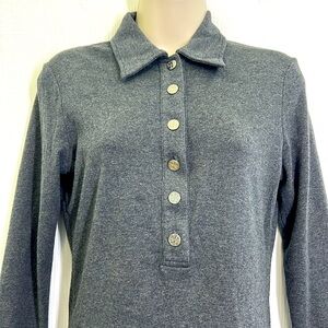 Tory Burch - Gray Three Quarter Sleeve Silver Logo Button Henley With Collar Top Size Small