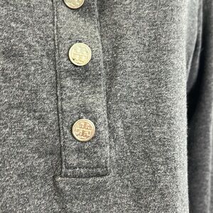 Tory Burch - Gray Three Quarter Sleeve Silver Logo Button Henley Size Small