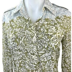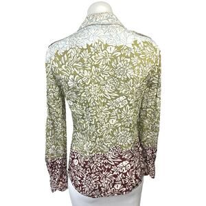 Tory Burch Green Brown Blue Colorblock Floral Button Down Shirt Top Size 2