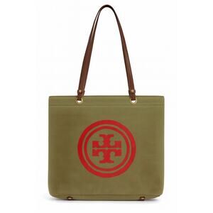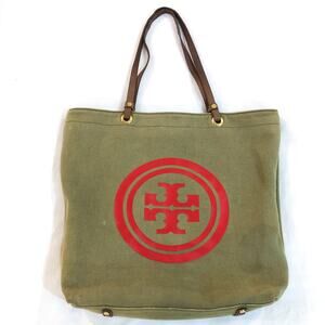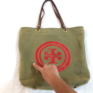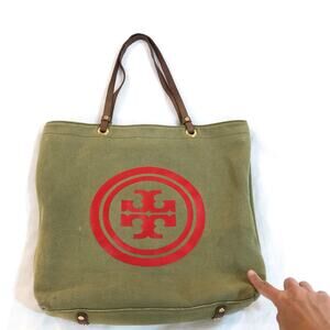 * Green cotton canvas material with contrasting orange Tory Burch logo