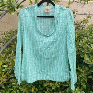 Tory Burch Green & White Sequin Stephanie Tunic. Size 6. Excellent Condition.