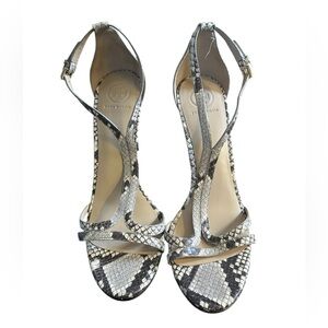 Tory Burch Grey/Black Python Embossed Leather Shelley Stiletto Sandals Size 9