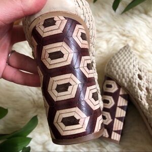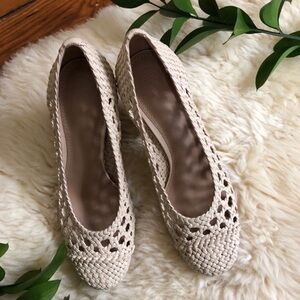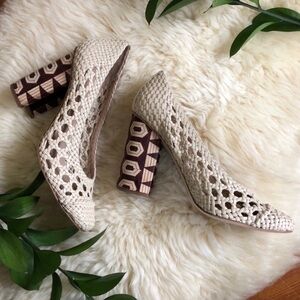 ❤️Lovely Tory Burch💕Grove Pumps of White buttery woven Leather with sleek Inlay Wood Heel 3.75”