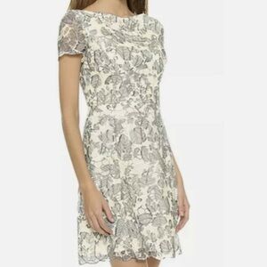 Tory Burch Guipure Summer Lace Natural Floral Midi Dress Womens Size 10 A Line