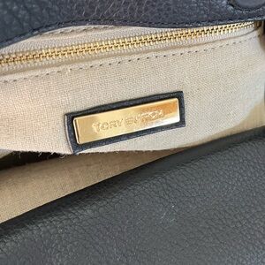 Tory Burch Half Moon Leather Satchel Black Gold Crossbody Convertible Bag