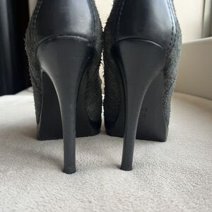Tory Burch Hamila Dark Gray Distressed Suede Lace Up High Heel Booties Women 6.5