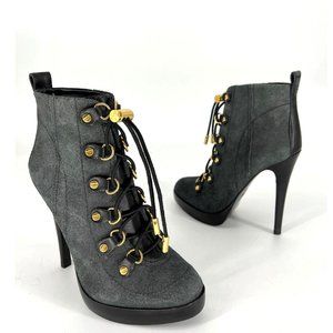 Tory Burch Hamila Suede Lace-Up Stiletto Gray Booties Ankle Boots 9 M
