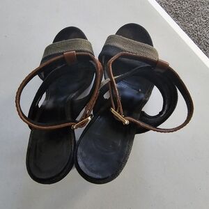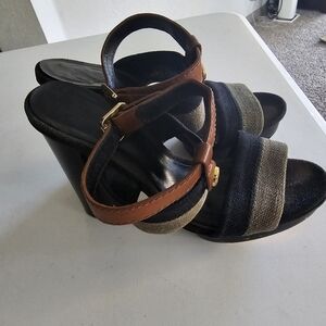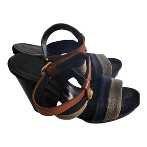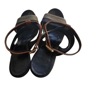 Tory Burch Heel Women 6M Black Brown Green Gold Logo Ankle Strap Luxury