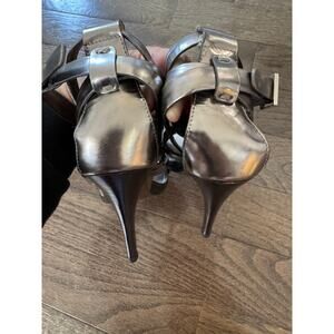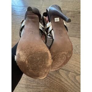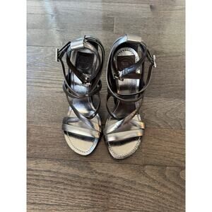 Tory Burch Heels Multiple Straps Silver Metallic Buckle Sandal Size 7.5M