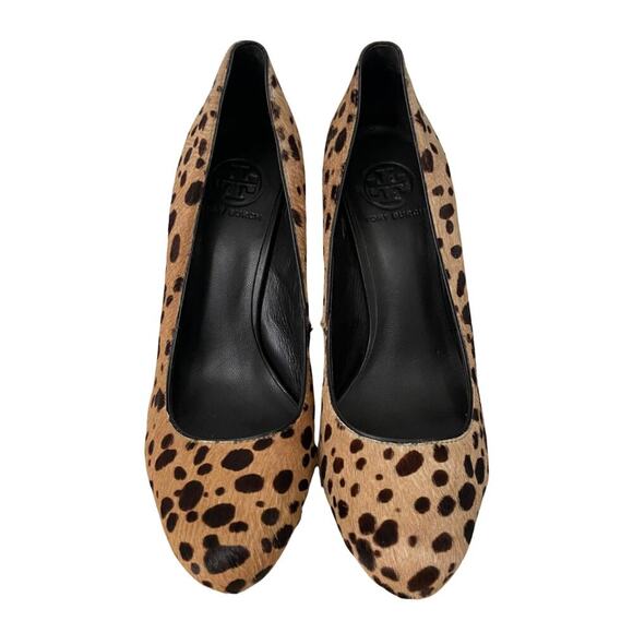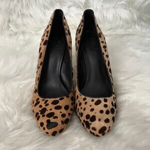 Leather Animal Print Cheetah Calf Hair Heels Tory Burch 7.5