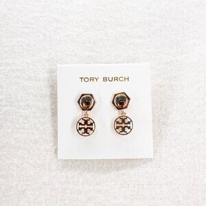 The unmistakable Tory Burch logo takes center stage. Iconic logos dangle from geometric studs, creating modern metal lightweight earrings.