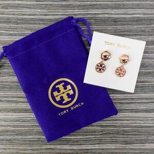 Tory Burch Hexagon Circle Logo Drop Earrings Rose Gold OS