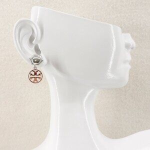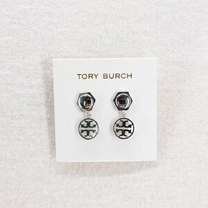 Tory Burch Hexagon Circle Logo Drop Earrings Silver OS