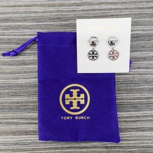 The unmistakable Tory Burch logo takes center stage. Iconic logos dangle from geometric studs, creating modern metal lightweight earrings.