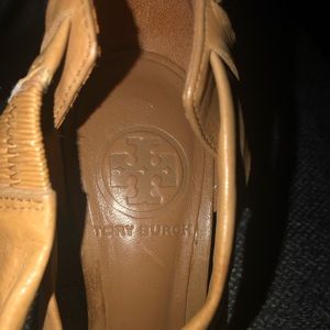 All leather Tory Burch heels. Gently worn. It straps up the leg.