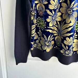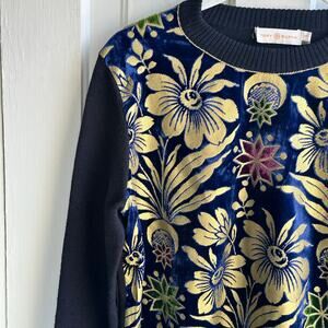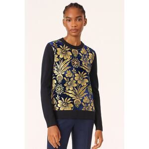 Tory Burch Hollis Cosmic Floral Velvet Foiled Gold Metallic Sweater