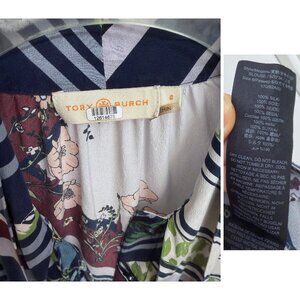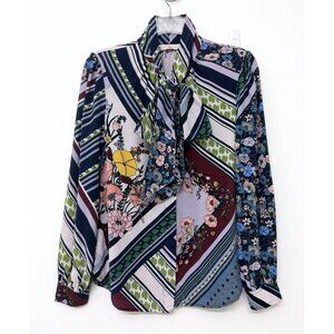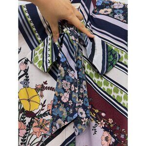Tory Burch Homage to Flower Patchwork Silk Blouse Top Floral Stripe Bow Tie 6