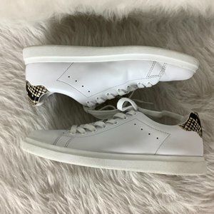 Tory Burch Howell Leather Logo Sneaker Titanium White Snake Embossed 9