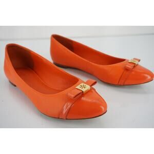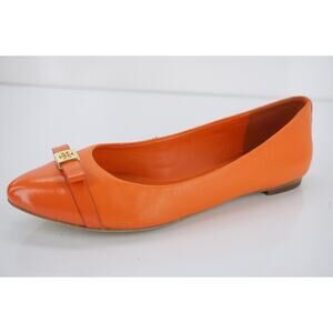 TORY BURCH HUGO POINTY TOE BALLET FLATS SZ 5.5 NEW TIGER LILY LEATHER GOLD LOGO