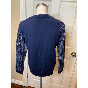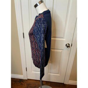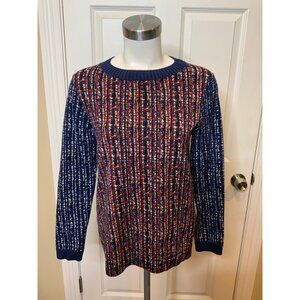 Tory Burch Hutton Blue Red Speckled Wool Crew Neck Sweater, Size M