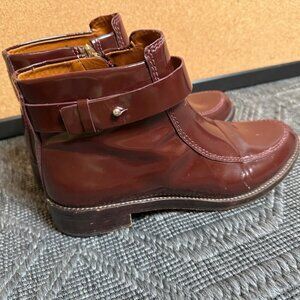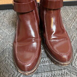 Tory Burch Hyde Boots in Maroon Red Patent Leather Size 7 Retro Style
