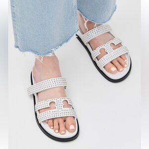 Tory Burch Ines Stud Sport Slides In Cloud/Silver