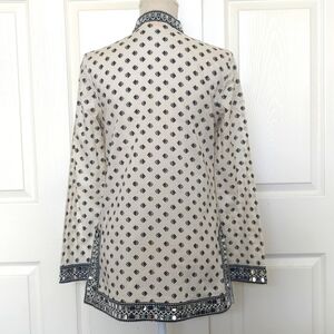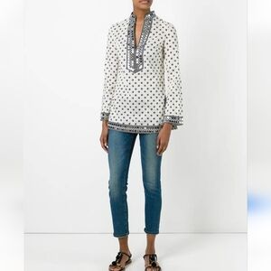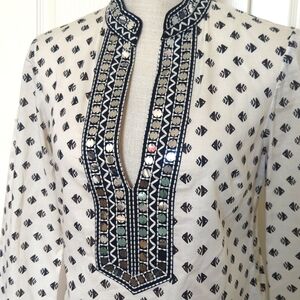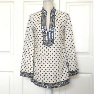 Tory Burch Ivory & Black Fish Print Tunic Top w/ Mirror Sequins