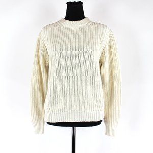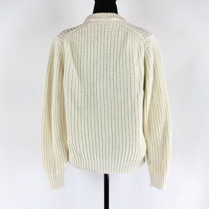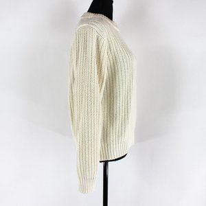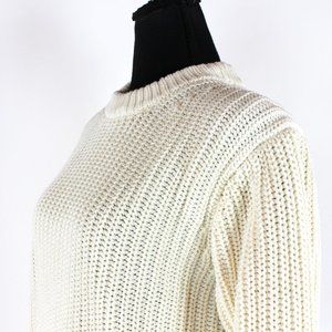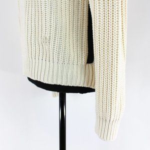 Tory Burch Ivory Chunky Cotton Knit Crewneck Sweater Small Side Stripe Pullover