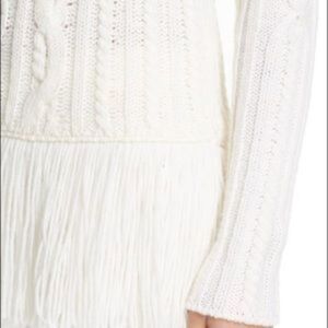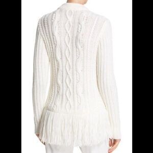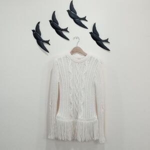 Tory Burch Ivory Valero Fringe Hem Cable Knit Merino Blend Sweater - S/P