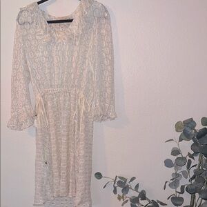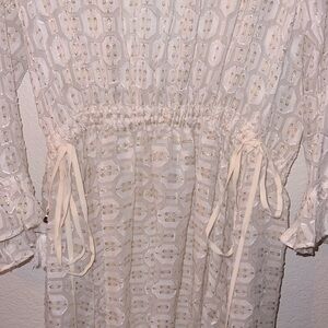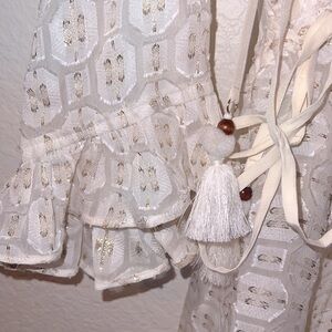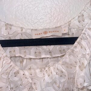 Tory Burch Jasmine Dress Ivory White Gold Metallic Dress Tie Waist