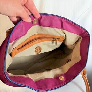 Tory Burch Jaden Tote Purple leather, navy base Dipped Color Block
