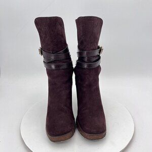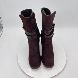 Tory Burch Jamie Women Size 5M Brown Suede Nubuck Crisscross Buckle Pump Boot