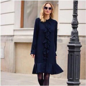 Tory Burch Jane Navy Ruffled Crepe de Chine Dress -NWT