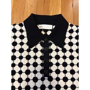 Tory Burch Jaquard Midi Polo Dress Black White Dots Belted Pleated A Line Size M