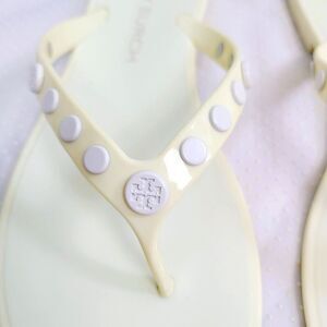 Tory Burch Jelly Sandals 9 Pale Yellow Studded Slip-On Flip Flop Flats