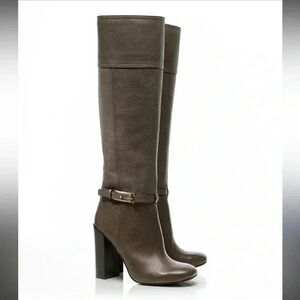 GORGEOUS grey/😍 taupe Tory Burch Jenna pebbled leather knee high boots