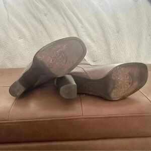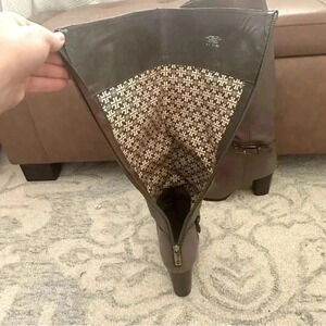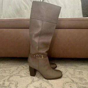 Tory Burch Jenna Zip Back knee-high boots Grey/Taupe Pebbled Leather Size 8 EUC
