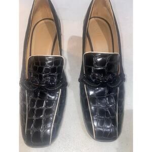 Tory Burch Jessa 75 Metal Heel Loafer Pumps In Black Patent Leather Heels Sz 8.5