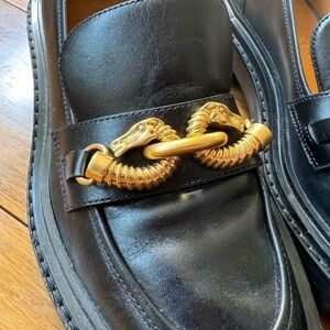 Tory Burch Jessa Lug Sole Loafers – Black Leather, Gold Horsebit, Size 7