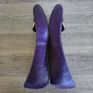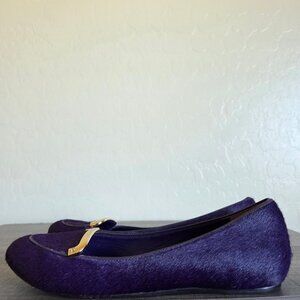 Tory Burch Jessa Purple Calf Hair Flats Slip-On Loafers Size 8.5 Gold Hardware