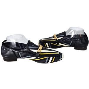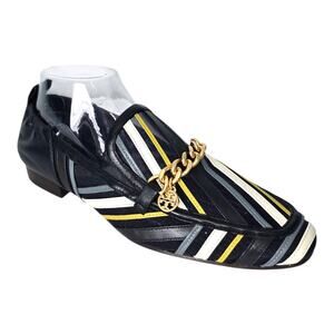 Tory Burch Jessa Stripe Mesh Loafer In Perfect Navy Multi Gold Chain Not Worn 9